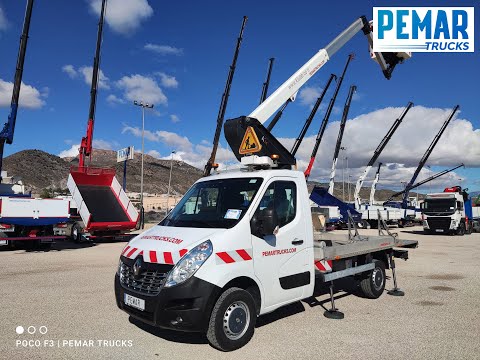 Available on requestRef.: 2986. Vehículo marca RENAULT modelo MASTER 2.3 DCI, con 130 CV, equipado con CESTA ELEVADORA PORTAPERSONAS, EURO 6, la marca del equipo elevador es KLUBB, modelo K26, estabilizadores delanteros y traseros, dispone de mandos en cesta y abajo en plataforma, hasta 12´5 m de altura de trabajo, la cesta soporta 120 kg aprox., para 1 persona, equipada con señales y luces de trabajo, con cámara de visión trasera, cambio manual, aire acondicionado, enganche para remolque, dispone de un armario para herramientas con dimensiones interiores de 1.51 m largo x 0.58 m ancho x 0.60 m alto, dimensiones de los neumáticos 225/65r16, distancia entre ejes 3.70 m largo, carga útil 500 kg, PMA 3.500 kg,...en perfecto estado y con pocos kilómetros!!!
